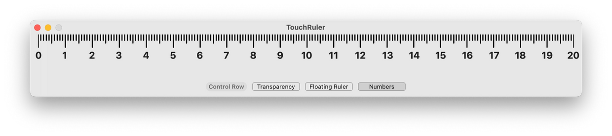 TouchRuler contains a 20 centimetre ruler, spanning across the application's window.